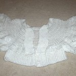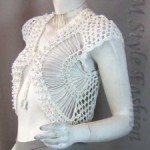 Beyaz Merserize İp ve tığ kullanılarak örülmüş Bolero. Örgüye yakadan başlanıyor ve her sırada arttırarak kollar oluşturulmuş. Tığ örgüsü hem kolay hem de çok keyiflidir. Bu güzel ve şık Boleroyu giymek de eminim çok keyifli olacaktır.