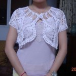 Tığ örgüsü şık görünümlü beyaz bolero şemalı anlatımıyla örülmesi zor olmasa gerek, serin yaz akşamlarında omuzlarınıza alabilmeniz için kolay bir model sunuyoruz.